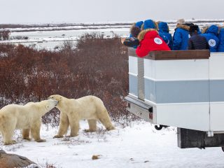 Search for northern wildlife on the subarctic tundra and soar over the boreal forest and Hudson Bay on an exhilarating helicopter flight from Churchill. Gain a unique perspective as you keep an eye out for migrating caribou, moose, Arctic fox, Arctic hare and the mighty polar bear. The aerial vantage point reveals a backdrop of endless lakes and colorful autumn vegetation, or a snowy tundra expanse later in the season. There’s nothing like surveying the landscape from on high to get a sense of just how vast the polar bear’s habitat is. From the air, you’ll also see ancient pre-Dorset tent rings and intriguing archaeological sites scattered about this remote and wild region.